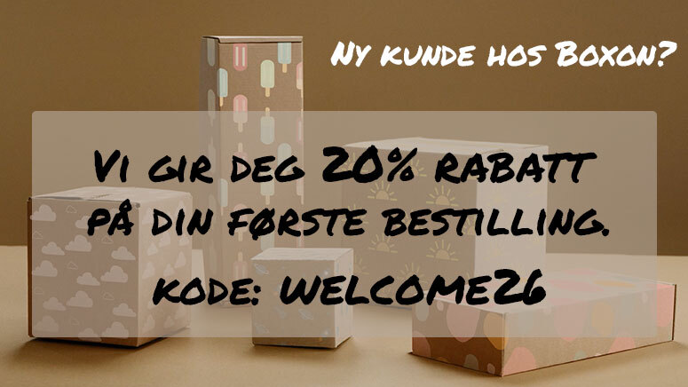 Vi gir deg som tidligere aldri har bestilt din emballasje via Boxon en rabatt på 20% av ordreverdien. For å benytte deg av rabatten bruker du rabattkoden WELCOME25 i nettbutikken.